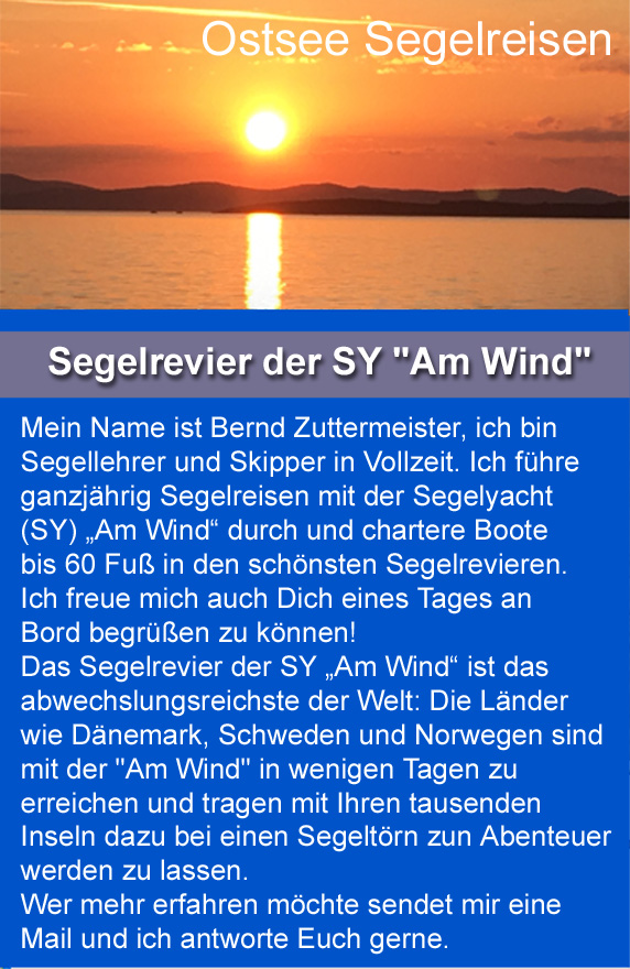Anders, als bei anderen Anbietern von Segelreisen oder Segelschulen werden die Törns ausschließlich mit Dipl. -Ing. Bernd Zuttermeister, als Schiffsführer besetzt. Ein Austausch des Skippers kurz vor Törnbeginn, kommt bei "FinSail" nicht in Frage. Ehrenamtliche oder nur gering bezahlte Skipper, gibt es bei FinSail nicht. So garantiert FinSail die Qualität des Törns und die Mitsegler wissen, von Anfang an, wo Sie dran sind.